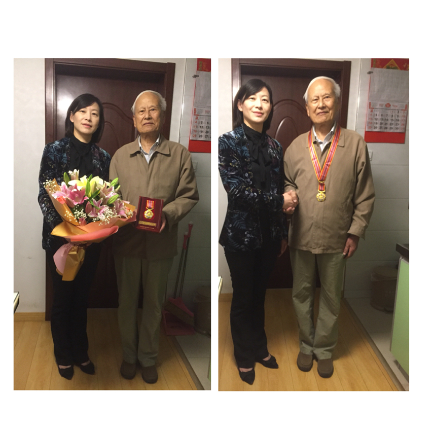 2020年10月26日,在紀念中國人民志愿軍抗美援朝出國作戰70周年之際,所黨委書記鄔秋玨一行,專程前往我所曾參加過抗美援朝出國作戰的退休干部陸端璋家中進行探望,代表上級黨組織向他發放了中共中央、國務院、中央軍委頒發的中國人民志愿軍抗美援朝出國作戰70周年紀念章,并向他敬獻了鮮花。黨委書記鄔秋玨說:“感謝您赴朝參戰為國家作出的貢獻,人民不會忘記、歷史不會忘記,向您致敬”!志愿軍老戰士陸瑞璋心情激動地回顧了70年前赴朝參戰的經歷,講到:“抗美援朝的勝利,換來的是祖國的和平和安寧,此生值了……”。